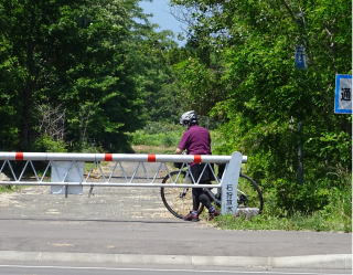 海に一番近い道路に出るときも、自転車を降りて、柵の間を通り抜けるんです。ちょっと面倒ですよね。